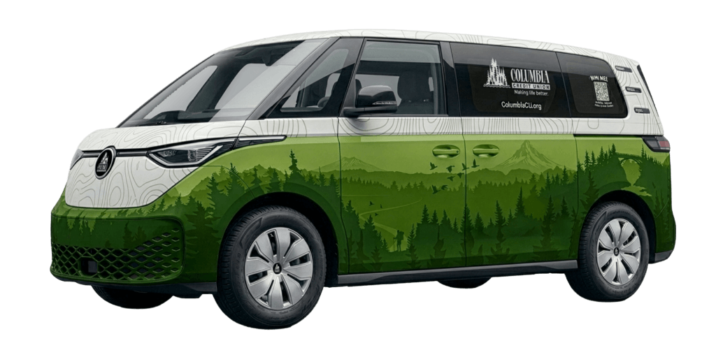 Enter to win a Volkswagen ID. Buzz by cruising through your everyday Columbia CU products and services. Each step in your financial journey moves you further down the road toward a brand‑new ride—plus monthly prizes worth $500—from checking and savings products to Digital Banking services. The further you ride, the more chances to win.